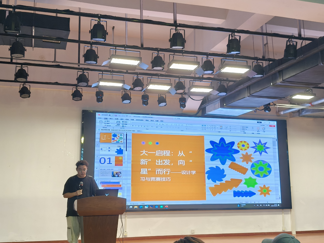 朱成成学长结合参与专业竞赛的实战经历,生动解析从灵感萌芽、团队协作到作品落地的全过程。他提出“竞赛是思维与创意的碰撞场”,激励新生勇于试错,在实战中锤炼专业能力。