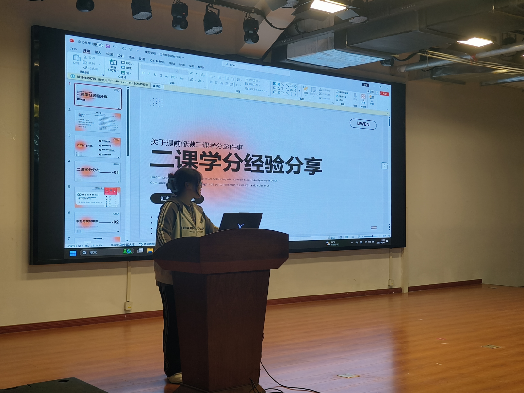 李雯学姐则围绕“第二课堂”与创新创业项目展开分享,系统介绍大创项目申报流程,并结合“蓝桥杯”等赛事经验,为有志科创的同学指明路径。
