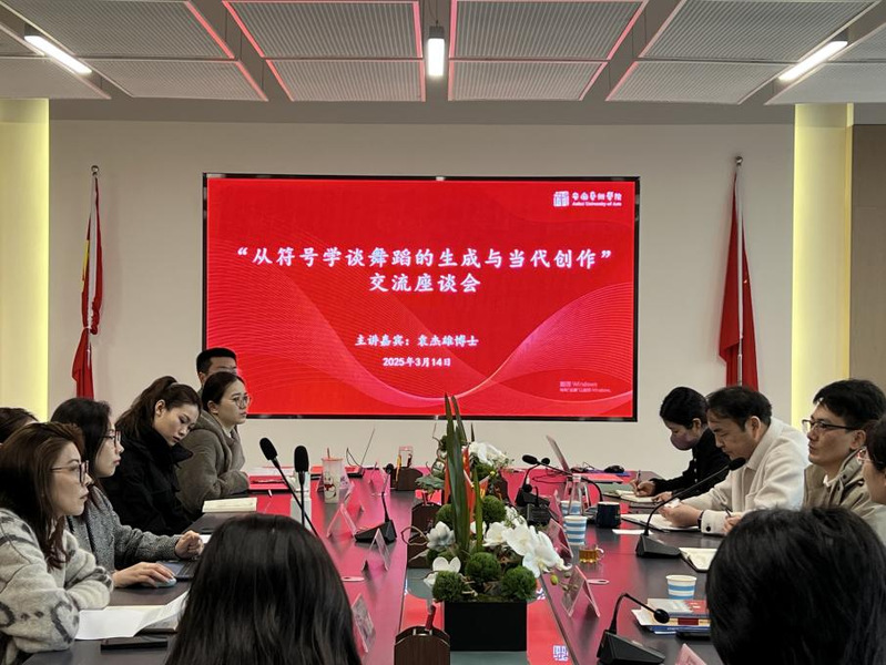 3月14日上午,在舞蹈学院408会议室,袁杰雄博士以“从符号学谈舞蹈的生成与当代创作”为主题与舞蹈学院专任教师进行了深入交流。