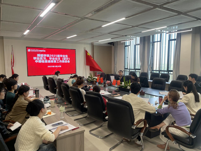 3月26日,舞蹈学院召开2025届毕业实习、毕业论文(设计)中期检查通报暨工作推进会,督促毕业实习、毕业论文(设计)工作提升质量、规范流程;对标本科教学工作合格评估要求,推动教学工作进一步规范化落实。会议由戴虎院长主持,学院全体专职教师参会。