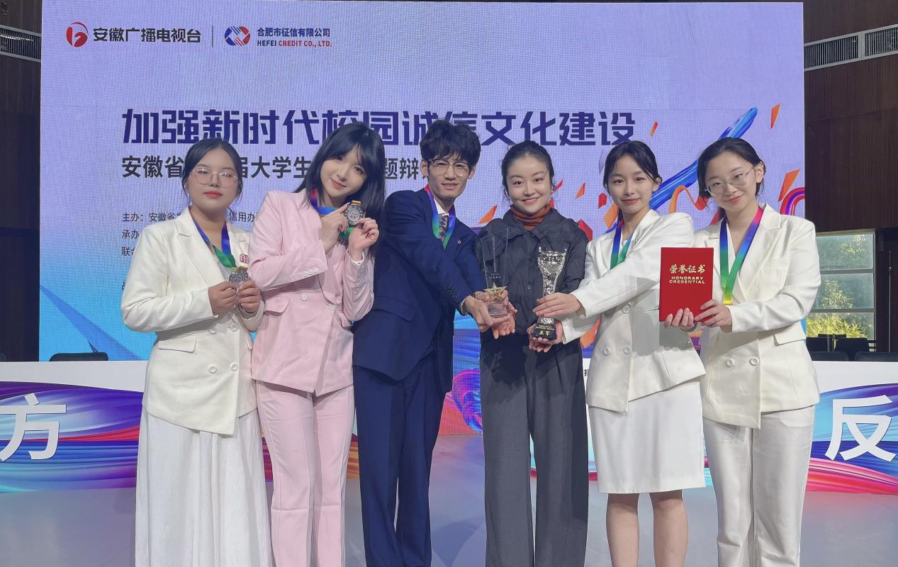 历时近一个月的比赛,经过合肥分赛区和省总决赛的7场角逐,我校辩论队从全省90余支队伍中脱颖而出,再次与安徽大学博士生领衔的团队对决决赛赛场。比赛期间,两支队伍围绕“加强新时代校园诚信文化建设,应以‘诚’为本/应以‘信’为本”为辩题展开交锋。作为反方辩手,我校传媒学院新闻学专业杨艺凡同学带领队友辩驳有据、妙语连珠,用严密的逻辑和犀利的语言,一次次博得现场观众的喝彩与掌声,最终斩获亚军。设计学院季煌坤同学荣获全场优秀辩手。