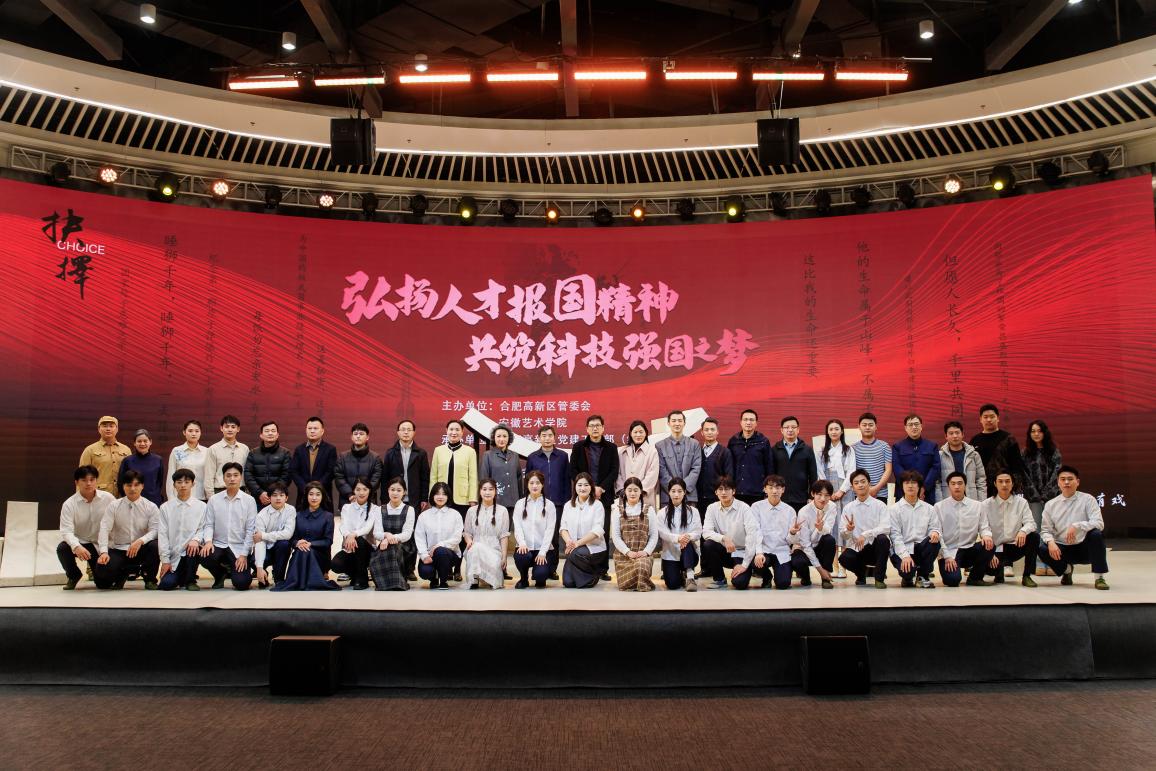 1月8日,《抉择》受邀在合肥高新区中安创谷全球路演中心上演。本次会演主题为“弘扬人才报国精神 共筑科技强国之梦”,这也是合肥高新区2025年开年首场人才日活动。校党委委员、纪委书记、监察专员程宗林,合肥市委统战部副部长王华臣,合肥高新区党工委委员、党建工作部(组织人事局)部长(局长)卜红霞等人出席活动。