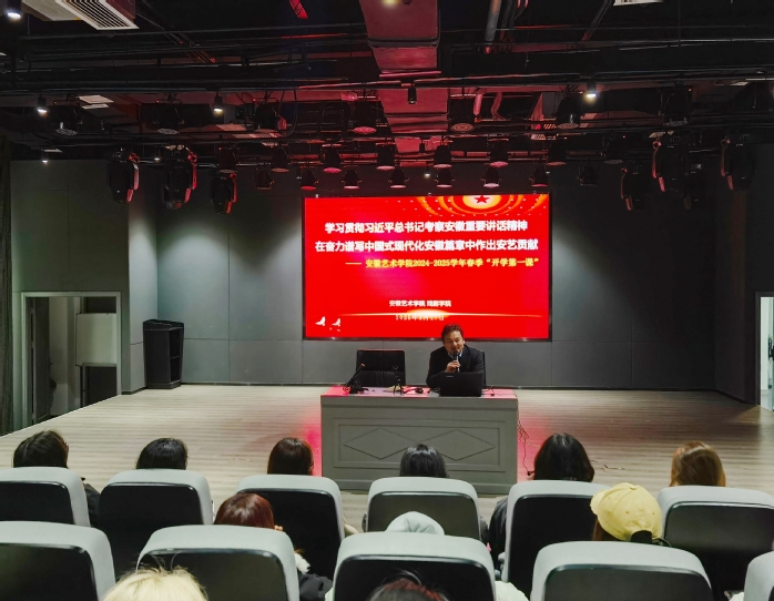 校党委委员、人事处处长、戏剧学院党总支书记曹晓富近日在戏剧学院为2023级舞台美术设计学生讲授2025年春季学期“开学第一课”。