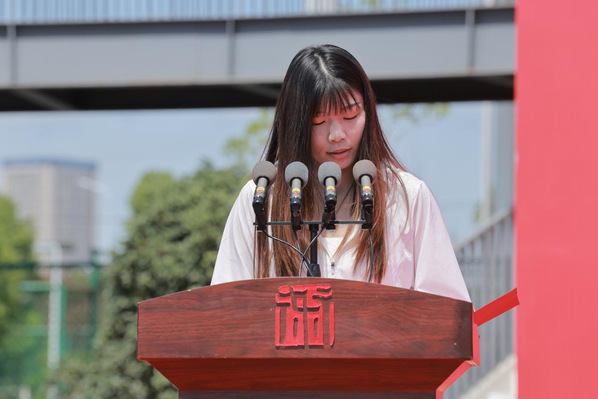 戏剧学院2021级表演专业学生宋天宇姐姐宋媛媛作为学生家长代表上台发言,分享了宋天宇在大学四年的成长蜕变,感谢学校老师用专业与爱心化解宋天宇的迷茫,用严谨与激情点燃他的创造力,并用三个祝愿致敬这场盛典。