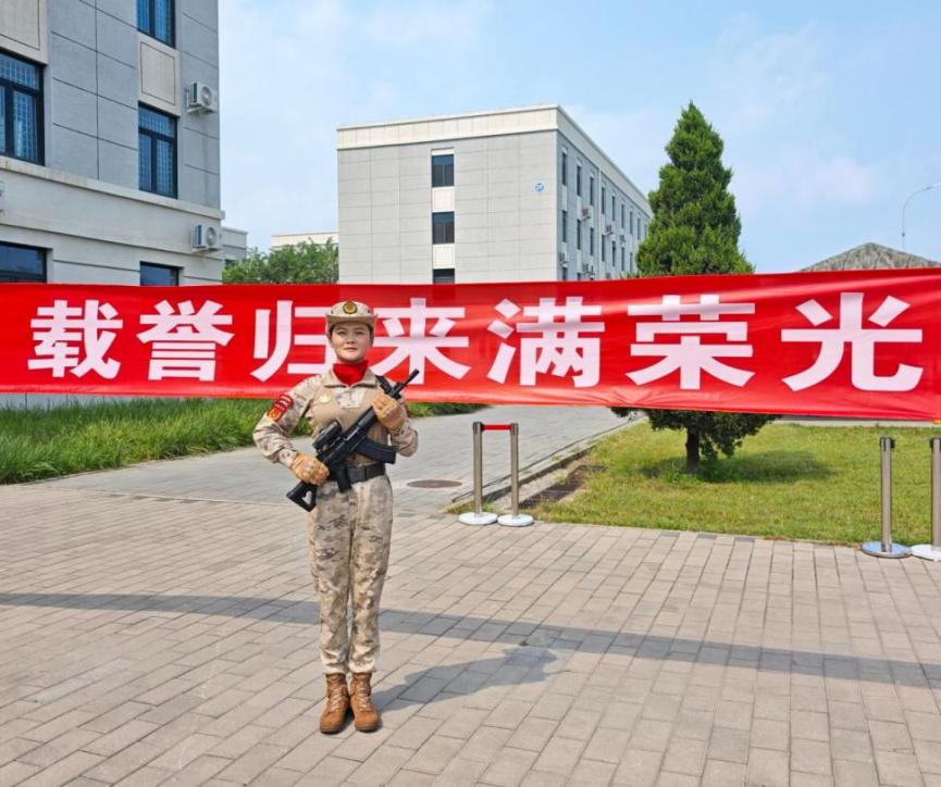 此次刘甜甜经过严格选拔,成功加入民兵方阵,不仅展现了退役军人“退伍不褪色”的军人本色与使命担当,更充分彰显了我校立德树人的育人成效。她表示:“能够参加此次阅兵任务,我感到无比光荣与自豪。我将以铿锵步伐,踏出和平的节奏。”(撰稿:张娜娜 图片:刘甜甜 初核:束舒娅 编辑:张娜娜 审定:尹广富)