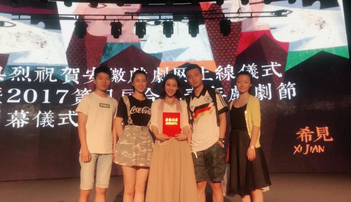 近日,第四届合肥青年戏剧节闭幕式暨安徽戏剧网上线仪式在中皖•金大地1912街区天仙配大舞台隆重举行。我院戏剧影视系16表演专升本班改编的话剧《捕鼠器》在高校竞演单元荣获第三名的佳绩。