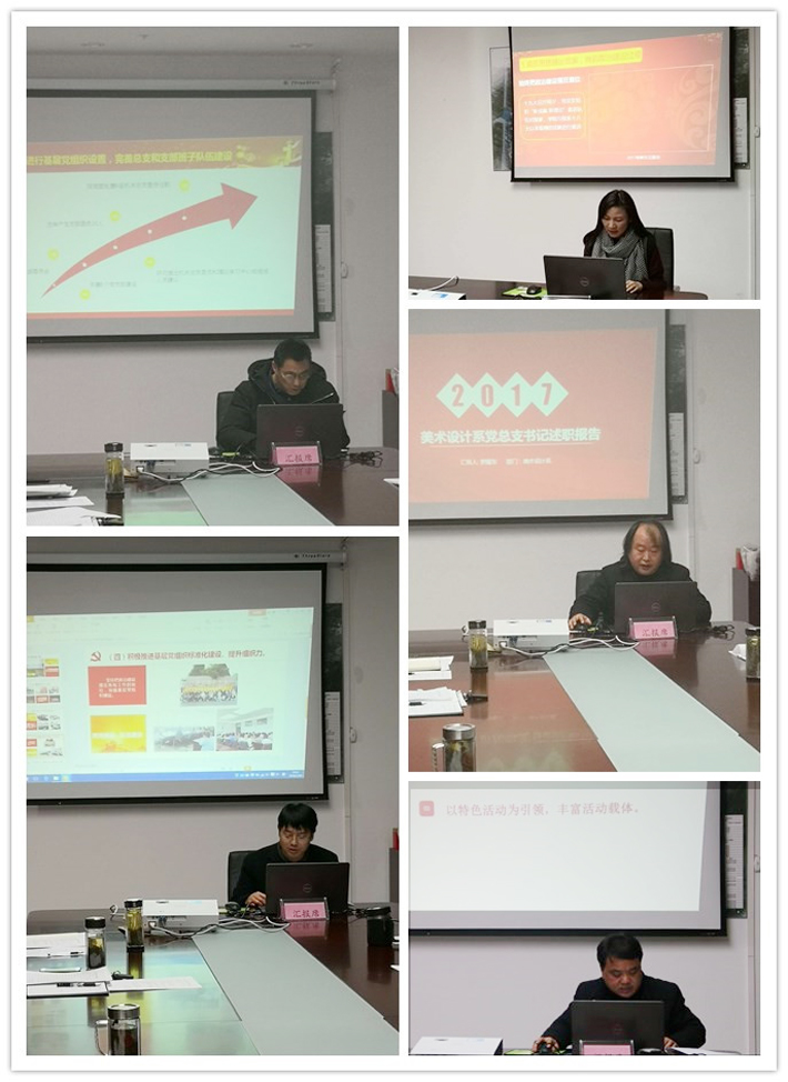 音乐舞蹈系党总支、戏剧影视系党总支、新闻播音系党总支、美术设计系党总支及机关党总支五位负责人分别从责任清单、任务清单、问题清单方面进行述职,详细阐述了各党总支在2017年学习贯彻党的十九大精神情况、基层党组织标准化建设情况、开展特色党建活动、完成上级党组织部署任务等方面的具体做法,总结了一年来党总支书记抓基层党建工作的成效,分析了存在的问题及原因,提出了2018年党建工作的思路和措施。
