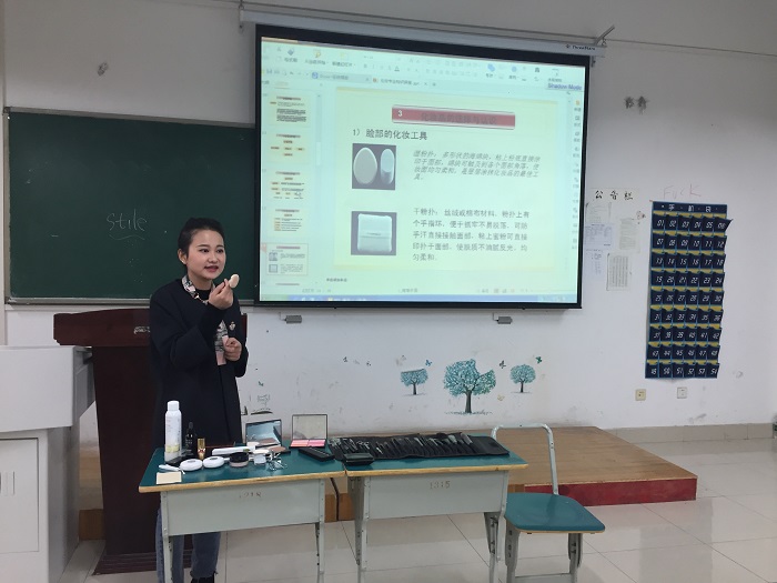 芳菲四月,大地回春。为了庆祝刚刚过去的“三八”妇女节,4月4日下午,学院工会女工委员会在2号教学楼302教室为全院女性教职工举办了一场化妆知识讲座。
