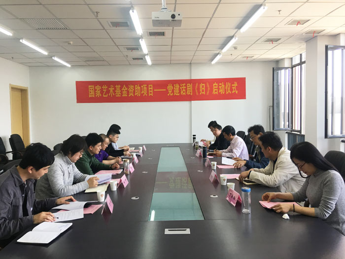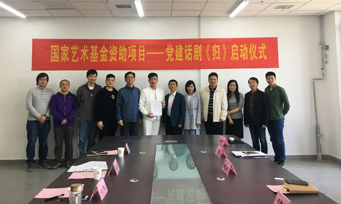 为更好推动国家艺术基金资助项目党建话剧《归》的顺利实施,4月17日下午,学院在戏剧楼三楼会议室举行该项目启动仪式。学院党委副书记沈端良,党委委员、副院长张建华,党委委员、组织部部长兼党建办主任曹晓富,党建办常务副主任丁永红与戏剧影视系党总支相关同志、话剧《归》作品主创共同参加。会议由系总支副书记、副主任李伟主持。