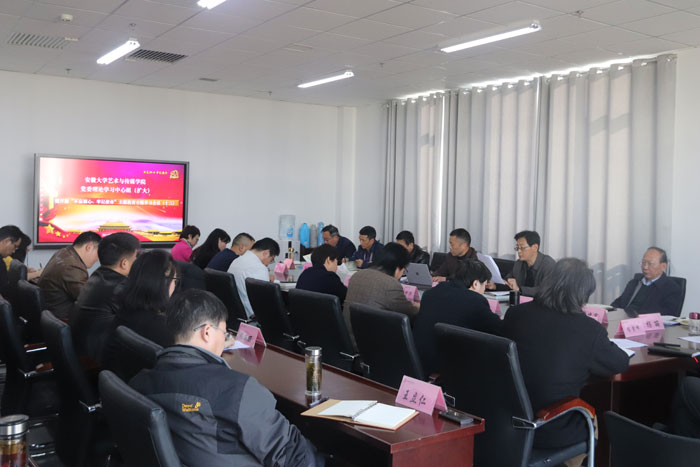 11月22日下午,学院党委理论学习中心组扩大会议暨“不忘初心、牢记使命”主题教育第十三次专题学习会议在艺术设计楼第一会议室召开,学院党委书记、院长樊嘉禄主持会议。院党政领导班子成员、中层以上党员干部(含助理)参加会议,院主题教育领导小组办公室成员、各党支部书记列席会议。