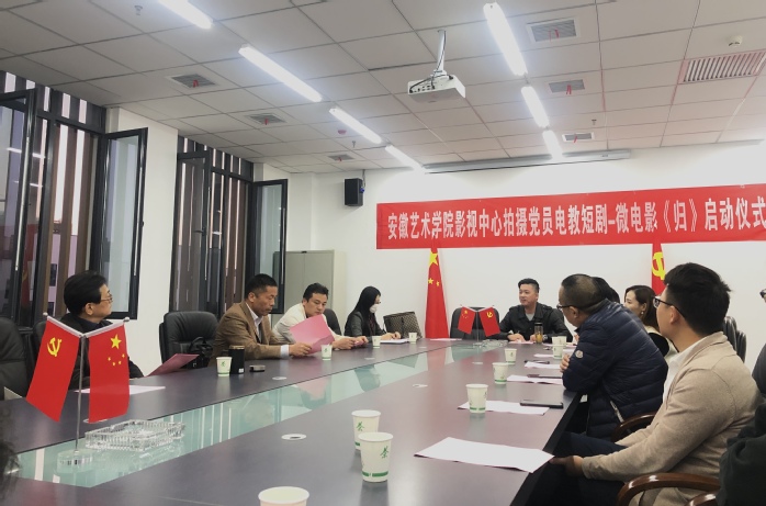 10月23日下午,我校原创党员电教短剧《归》启动仪式在戏剧楼三楼会议室举行。北京电影学院(安徽分院)院长张备,北京掌中微视文化艺术院董事长姚晓辉,国家一级演员徐世银,笃志文化传媒有限公司副总经理张泰然等专家应邀出席。学校党政主要负责人樊嘉禄,党务负责人沈端良,学校相关部门负责同志以及作品主创人员等一同座谈研讨。