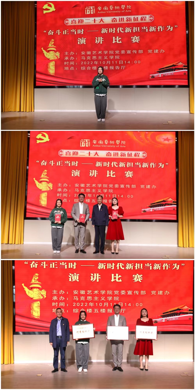 10月11日,学校举办了“奋斗正当时——新时代 新担当 新作为”演讲比赛,戏剧学院第一学生党支部学生党员周一荣获学生组一等奖,戏剧学院第一学生党支部荣获优秀组织奖。