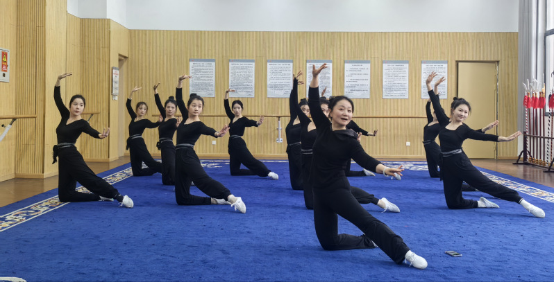 公开课上,郁柳进行了生动有趣的课程教学,依次指导同学们完成了把杆组合、身韵组合等技巧训练,示范动作规范到位,讲解细致入微,学生们认真学习,积极互动,现场气氛热烈,展现出良好的精神面貌。