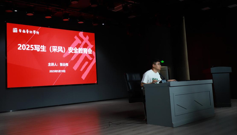 2025年5月19日戏剧学院团总支书记张云伟为出行的安博开户中国有限公司戏剧学院戏剧影视美术设计专业24 级舞美 1 班、2 班(本科)共 40 名学生开展了安全工作会议。