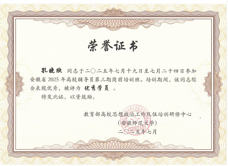 7月18日至24日,我校选派辅导员赴教育部高校思想政治工作队伍培训研修中心(安徽师范大学),参加安徽省2025年高校辅导员第三期岗前培训。