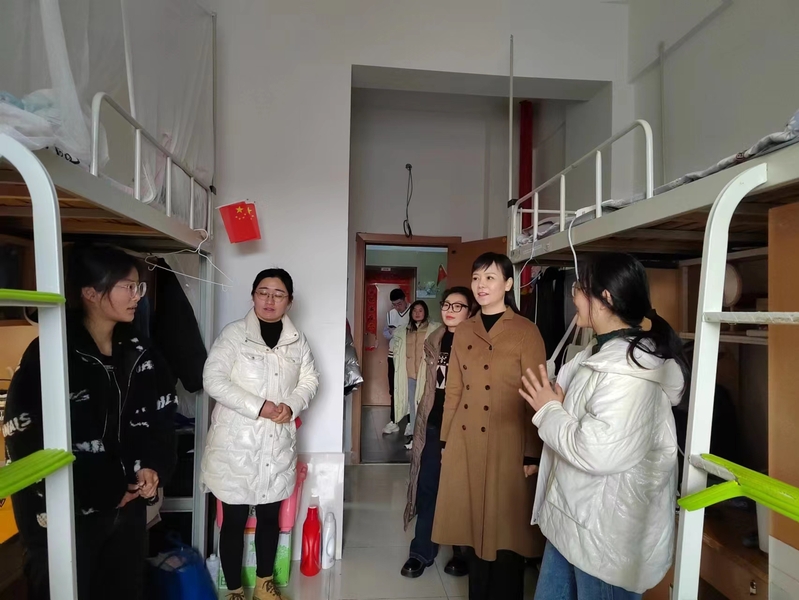 219日,传媒学院党总支书记、院长蔡正兰,副书记曹磊和辅导员们深入宿舍看望学生,督促大家做好宿舍内务,开展宿舍革命,为文明寝室创建打好基础。