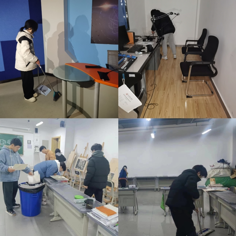 新学期传媒学院将以爱国卫生运动为抓手,发扬劳动精神,坚持实行教室包保制度,让学生们共同维护教室卫生,18-19日,各辅导员带领学生们打扫了包保教室,为新学期的课堂教学营造良好的环境氛围。
