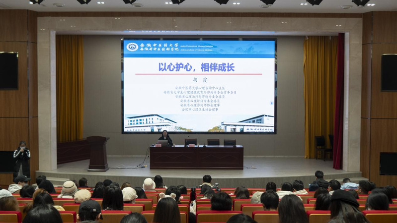 12月12日,我院在综合楼五楼报告厅举办“以心护心,相伴成长”心理健康主题讲座。安徽省大学生心理健康教育与咨询专委会常务委员、安徽中医药大学心理咨询中心主任胡霞受邀主讲。传媒学院党总支副书记张雷雷、校心理健康教育与咨询中心副主任戴宇峰出席。
