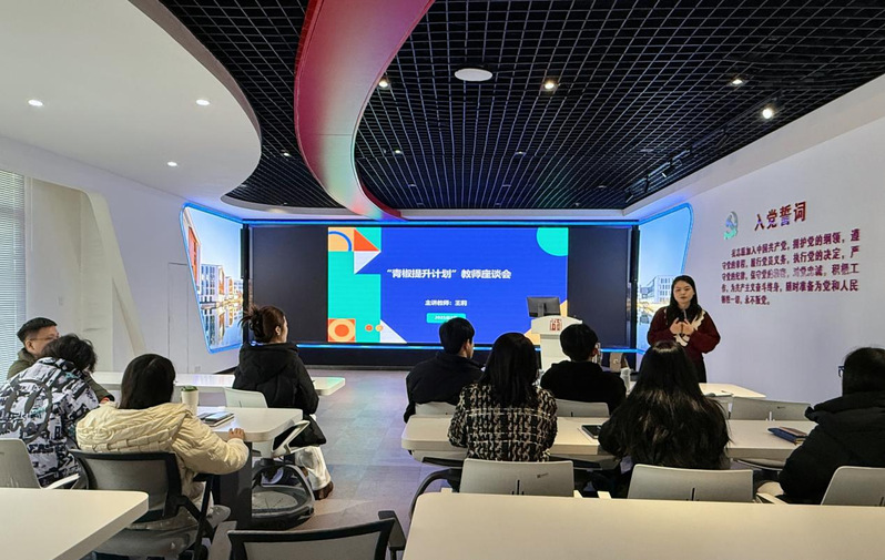 2月26日下午,传媒学院在播音楼VR党建实训室举办“青椒提升计划”座谈会,学院教学督导王莉副教授与青年教师们开展了深入的指导和交流。