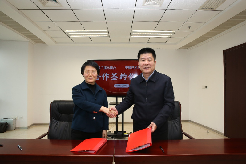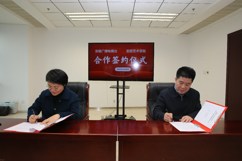 2月28日下午,我校与安徽广播电视台共建实习与就业基地签约仪式在安徽广播电视台顺利举行。校党委书记韩军出席签约仪式。安徽广播电视台党委书记、台长、总编辑吴文胜参加仪式。