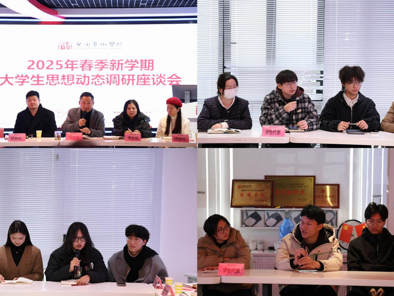 本次座谈会紧扣学生寒假回乡见闻、社会实践经历、关注的社会热点事件以及对学校教育教学、学生管理、后勤保障的意见和建议等展开调研讨论。会上,学生代表们积极发言,围绕思想动态、教育教学、宿舍生活、校园安全等方面发表看法并提出宝贵建议。各职能部门代表认真聆听记录,针对同学们提出的问题逐一细致解答。对于现场无法立即回复的问题,各部门表示将在会后积极研究解决办法并落到实处,同时鼓励同学们为学校发展建言献策,共同推动学校各项工作不断进步。(撰稿:嵇健、朱颖 摄影:朱乐乐 初核:张雷雷编辑:陆璐 审定:蔡正兰)