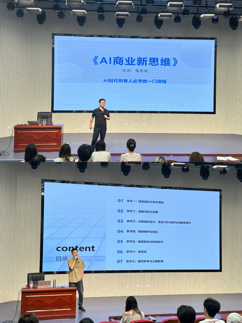 来自安徽省电子商务协会的鲁思成老师深入剖析了人工智能生成内容在电子商务领域引发的深刻变革与蕴藏的巨大商业潜力,引导同学们思考如何将前沿技术融入未来电商运营中。来自黄埔集团的胡乐乐老师紧密围绕当前最具影响力的平台,结合丰富的实战经验与鲜活案例,为同学们提供了极具针对性的行业方法论指导。
