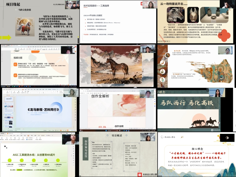 比赛采用线上答辩形式进行,分为职校组与本研组两个赛道。参赛团队围绕“生肖马”主题,运用Stable Diffusion等AIGC技术,对创作出的AIGC作品进行线上答辩。本次大赛不仅是一次技能竞技,更是数字艺术教育与产教融合成果的集中展示。通过以赛促学、以赛促创,有效推动了AIGC技术在安徽高校教学与实践中的落地,为培养新时代数字艺术与科技融合人才提供了重要平台。(撰稿:祝赫 摄影:钱振 初核:刘涛 编辑:陆璐 审定:刘长华)