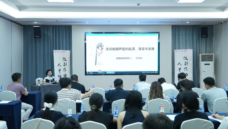 下午,徽剧省级非物质文化遗产传承人江贤琴开展《徽剧声腔的起源演变与发展》课程讲授。