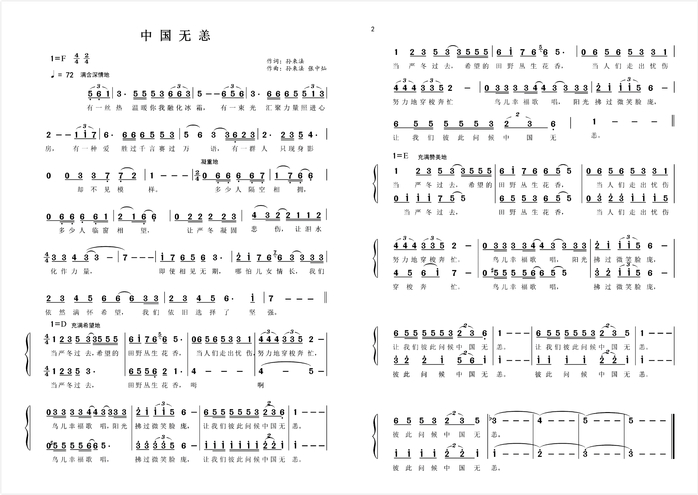 “有一丝热,温暖你我融化冰霜;有一束光,汇聚力量照进心房……当严冬过去,希望的田野丛生花香;当人们走出忧伤,努力地穿梭奔忙,鸟儿幸福歌唱,阳光拂过微笑脸庞。让我们彼此问候:中国无恙!”