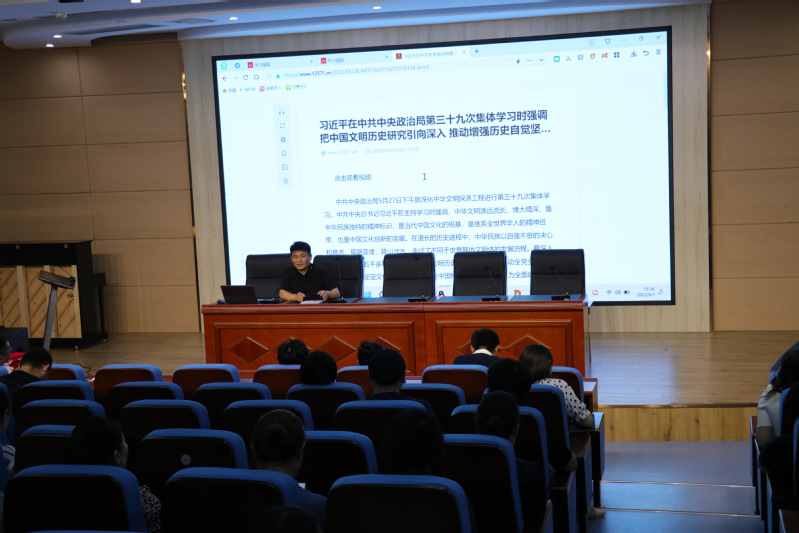 会议最后,副书记李传兴先后领学了习近平总书记在庆祝中国共产主义青年团成立100周年大会上的重要讲话、习近平总书记重要文章《正确认识和把握我国发展重大理论和实践问题》(《求是》2022年10期)、习近平总书记在中共中央政治局第三十九次集体学习时的重要讲话精神等三项重要学习内容,引导教职工提升理论素养,坚持理论学习与教学实践相统一,切实在具体工作中落实立德树人根本任务。