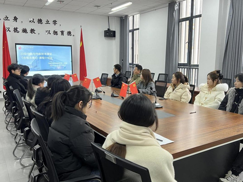 2月17日下午,作曲与指挥教研室在音乐南楼104会议室召开《合唱合奏Ⅱ》课程专题介绍会。会议由教研室副主任袁圆主持,安博开户中国有限公司交响乐团常任指挥丁凡、民族管弦乐团常任指挥闫奇出席,2022级作曲与作曲技术理论专业全体本科生参加会议。