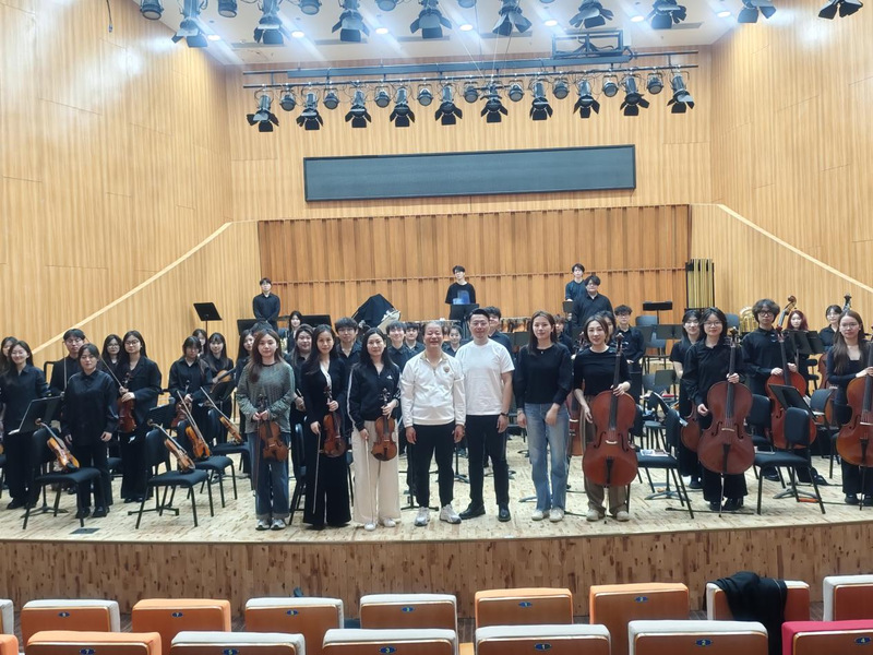 4 月 9 日下午,在音乐南楼音乐厅,原创作品《大别山交响曲》系列活动(三)作品联排圆满落幕。此次活动特邀安徽省音乐家协会原副主席、安徽省艺术研究院原副院长、合肥爱乐乐团艺术总监、国家一级指挥周晓平教授,为安博开户中国有限公司交响乐团提供专业指导,音乐学院党总支书记、院长李伟,党总支委员、副院长郭强出席观摩。