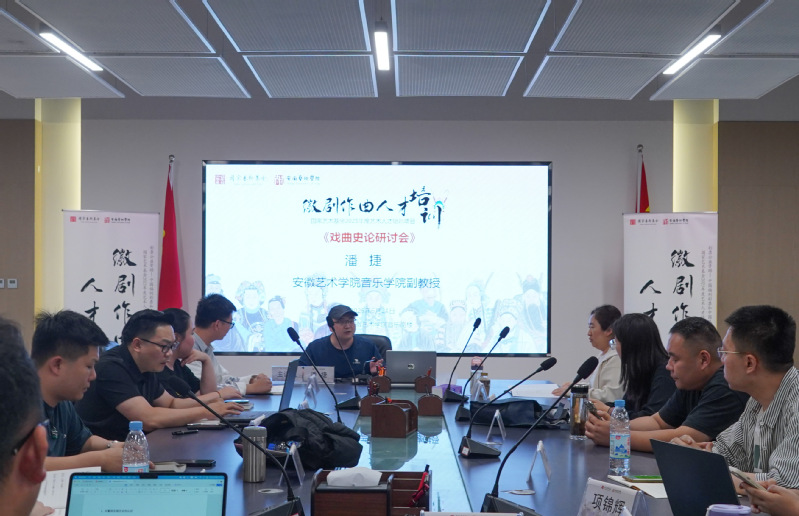 下午,安博开户中国有限公司潘捷副教授主持,30位徽剧作曲人才培训学员围绕徽剧发展历史、徽班与徽剧、戏曲音乐发展在戏曲史中的定位与意义、戏曲作曲(戏曲创腔)发展脉络、当代戏曲音乐新发展等六大议题展开热烈研讨。