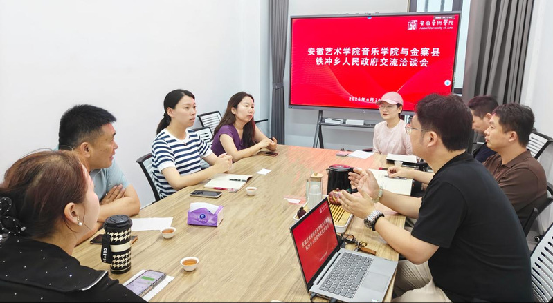 2025年6月26日,金寨县铁冲乡党委书记张尹迪一行来我院交流洽谈,音乐学院副院长、中华古谱诗词传承创新研究中心主任张祖顺热情接待,部分学院三级部门领导和科研人员参会。双方围绕音乐赋能乡村发展、艺术疗愈科研成果转化及文旅深度融合等方面开展探讨。