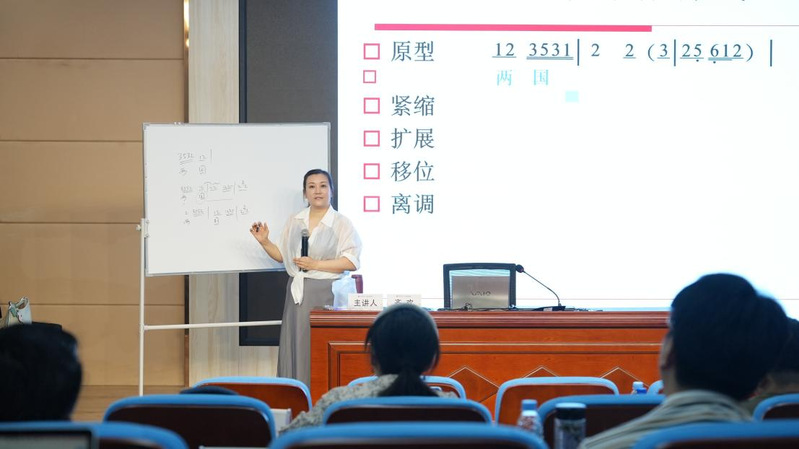 7月10日上午,中央音乐学院教授钱茸讲授《语言音乐学》,为学员揭示音乐与语言的内在联系。其回溯学科发展以及该领域因历史原因发展曲折的历程。