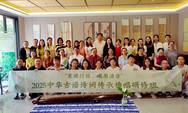 2025716日至20日,东坡行旅·峨眉清音”2025中华古谱诗词传承传唱研修体验营成功举办中心主任张祖顺受邀担任讲授专家,中心科研秘书、《古谱诗词创演策划》课程教师谢潘婕参研学习。