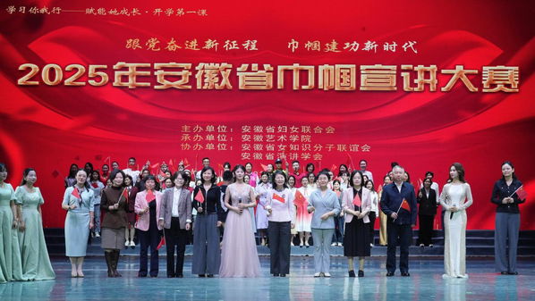 本次巾帼宣讲大赛通过“理论”与“艺术”的有机融合,生动展现了新时代安徽女性坚毅果敢、专业精进、乐于奉献的精神风貌。我校在比赛中荣获“特别贡献奖”,教师代表马宏、祝赫、王子涵等表演的情景朗诵《缝江补淮保河山》荣获“特别展示奖”,谢潘婕老师带领女声合唱团表演的《花开中国》获得广泛好评。