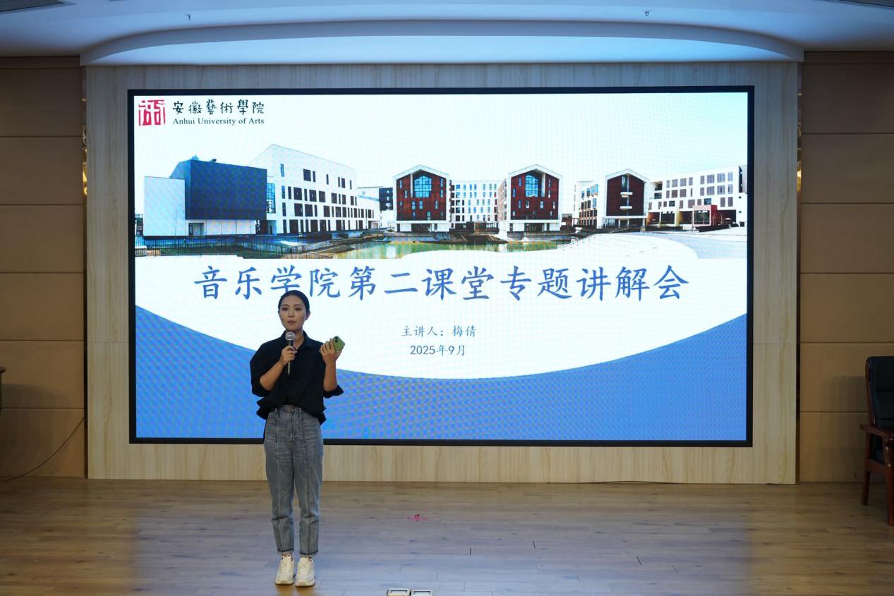 为帮助音乐学院2025级新生全面了解学校第二课堂学分管理制度,引导学生积极参与课外实践活动,提升综合素质,9月24日下午,音乐学院团总支面向2025级新生在音乐南楼报告厅组织召开第二课堂培训宣讲会。会议由音乐学院团总支书记梅倩主持,2025级全体新生参加。